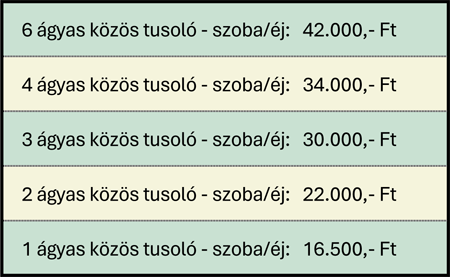 Szállás árak a Kolbászfesztivál ideje alatt a kollégiumban: